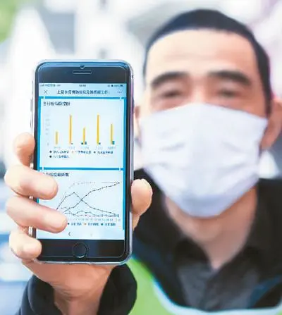 2月20日,在浙江省杭州市富阳区上官乡芳村检查点,工作人员展示手机上的“疫情防控云图”的实时数据。新华社记者 徐 昱摄
