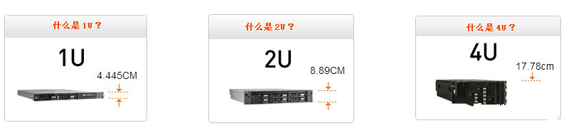 1U和2U,是服务器的厚度,1U大概是相当于机柜的三个小格子,1U是4.445厘米。以下这个是图片: